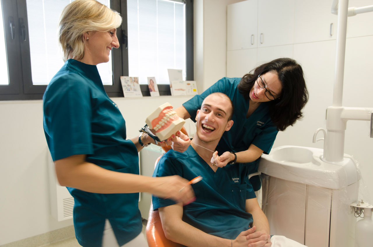 L’ igiene orale eseguita dall’igienista dentale laureata utilizza ultrasuoni e curettes ed è consigliata una due volte l’ anno.